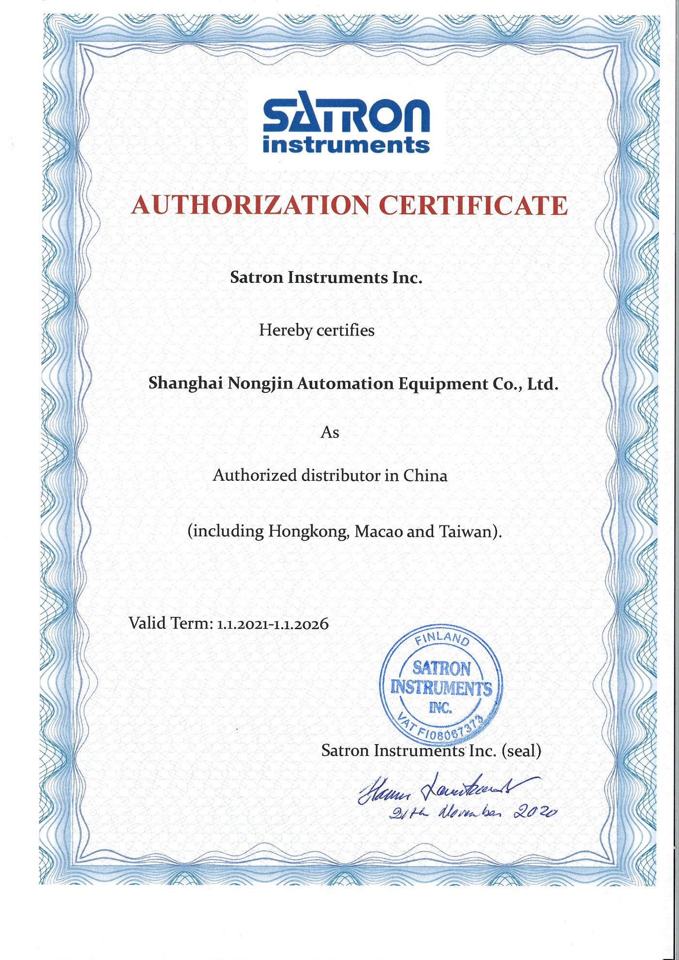 SARTON 授权证书